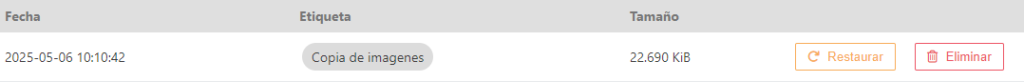 Al hacer clic en “Crear backup”, se realizará una copia en el instante de la carpeta indicada y aparecerá en el listado inferior: